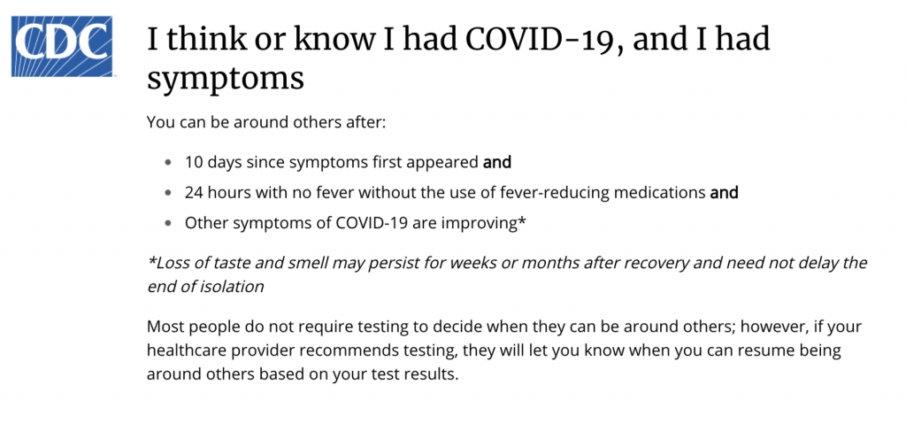 - https://www.cdc.gov/coronavirus/2019-ncov/if-you-are-sick/end-home-isolation.html