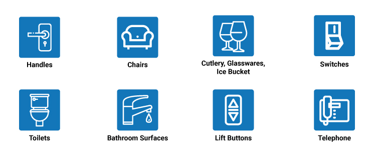 - ยกตัวอย่าง ปากกา, โต๊ะ, ลูกบิดประตู, สวิทช์, ราวจับ, ปุ่ม, ห้องน้ำ, หัวก๊อก